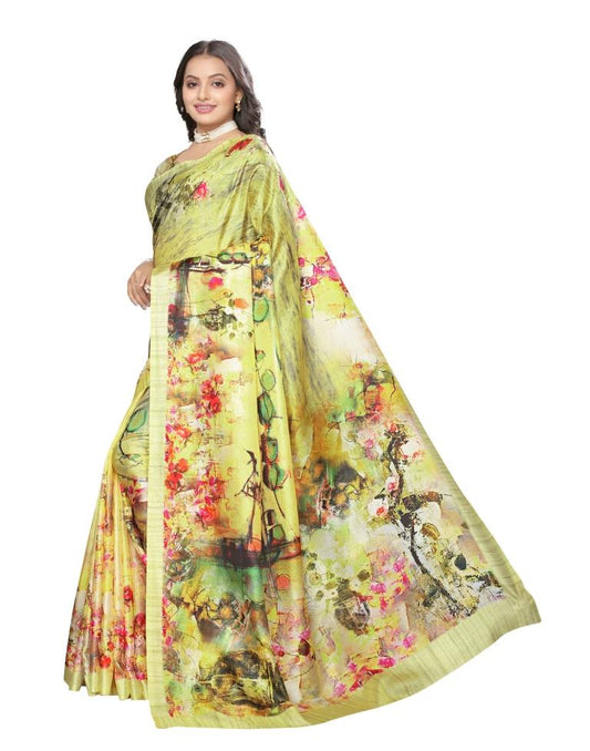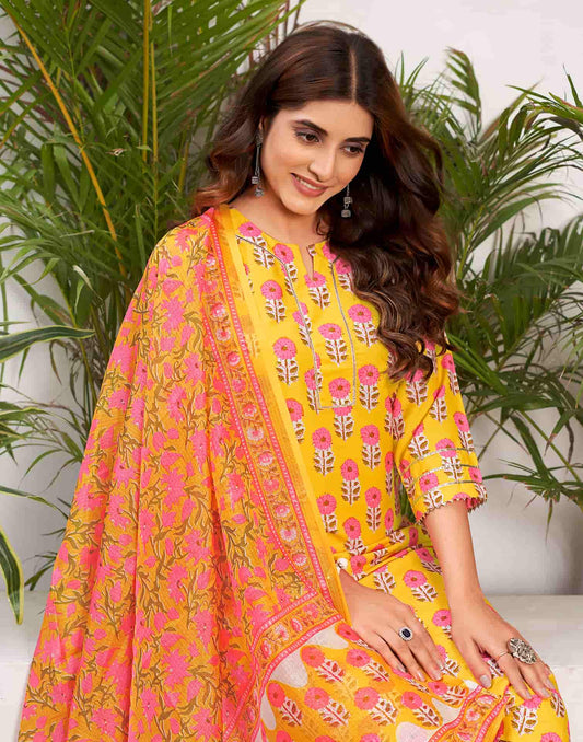 Yellow Printed Rayon A-Line Kurta With Pant And Dupatta