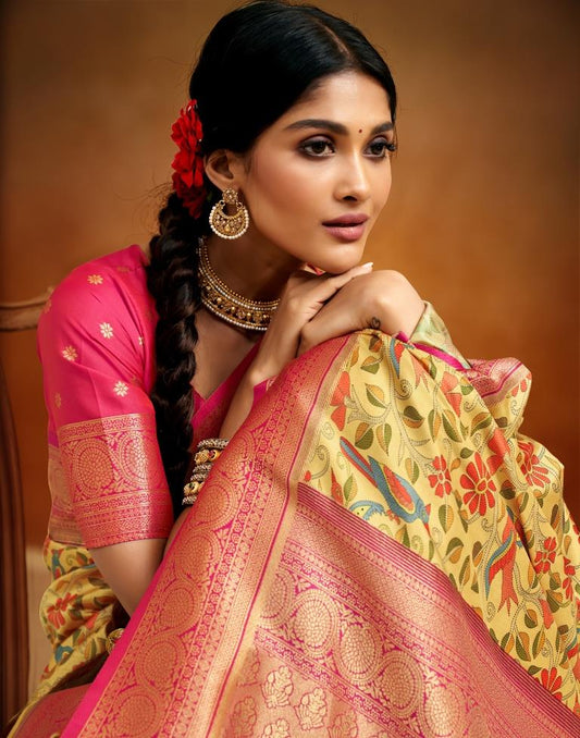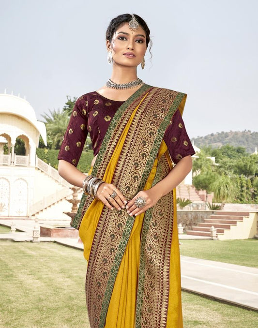 Yellow Silk Woven Banarasi Saree