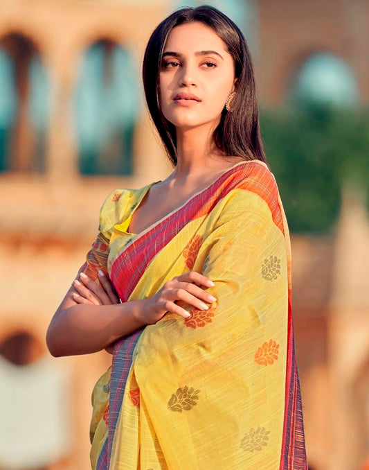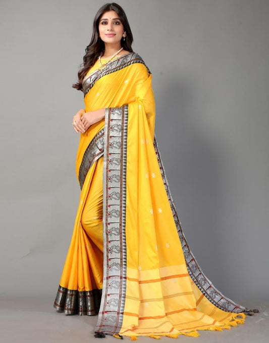 Yellow Weaving Cotton Saree