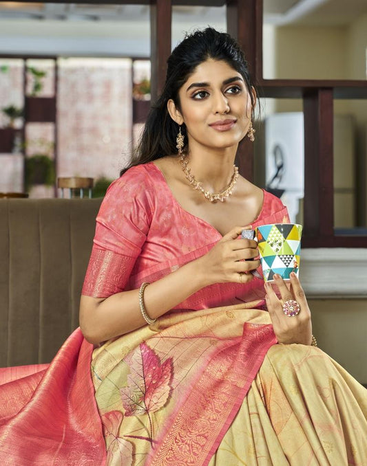 Yellow Weaving Silk Printed Saree