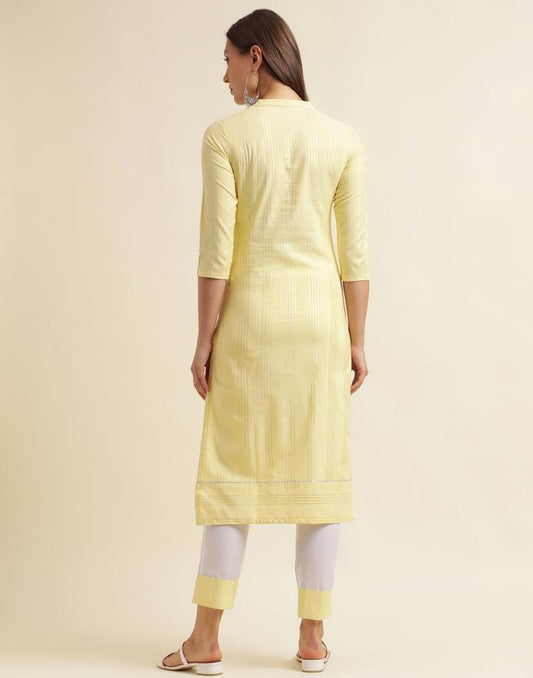 Yellow Weaved Cotton Kurta With Pant