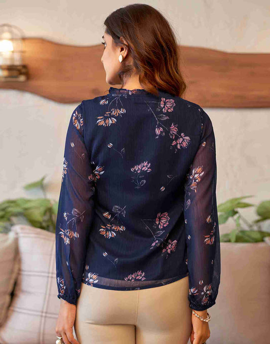 Blue Chiffon Printed Top