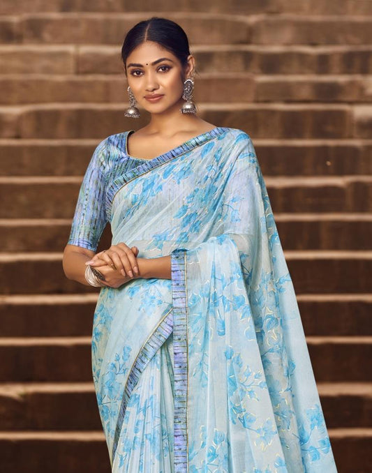 Blue Chiffon Printed Saree
