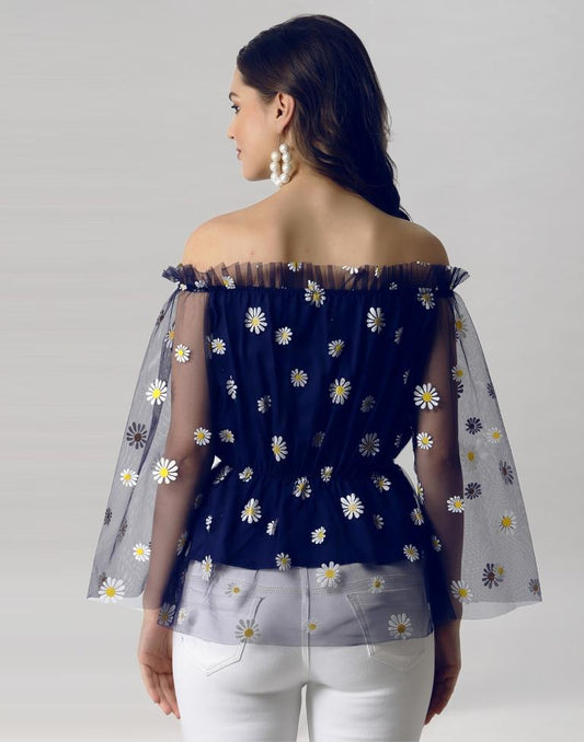 Blue coloured Dyed Net Top