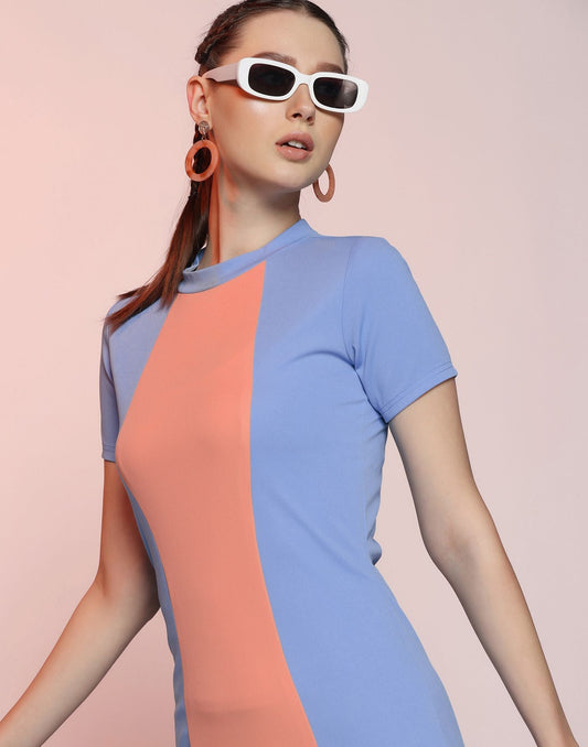 Blue Colour Block Bodycon Dress