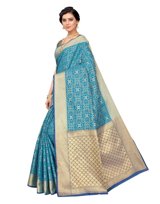 Blue Coloured Poly Silk Banarasi Jacquard Partywear Saree