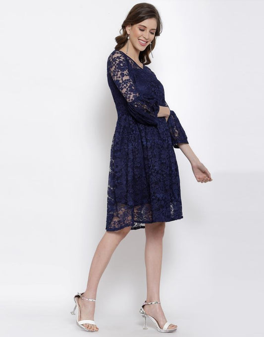 Regular price Rs. 689.00Regular priceUnit price / perRs. 0.00Sale price Rs. 689.00Blue Coloured Plain Russell Net Dress
