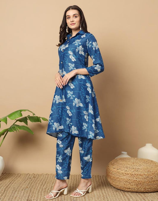 Regular price Rs. 1,009.00Regular priceUnit price / perRs. 0.00Sale price Rs. 1,009.00Blue Cotton Printed Co-ord Set