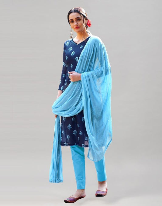 Regular price Rs. 1,049.00Regular priceUnit price / perRs. 0.00Sale price Rs. 1,049.00Blue Cotton Printed Kurta Set With Dupatta