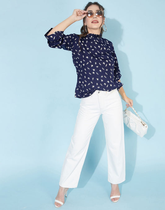 Regular price Rs. 409.00Regular priceUnit price / perRs. 0.00Sale price Rs. 409.00Blue High Neck Printed Top