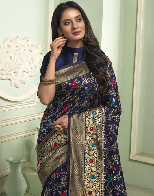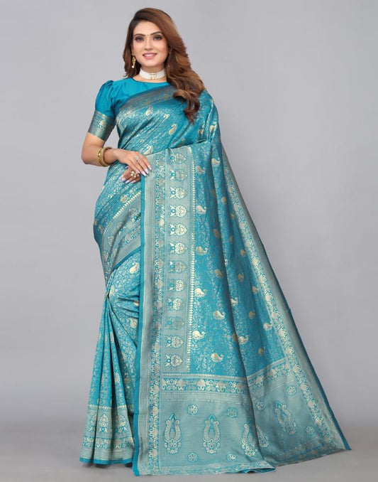Blue Jacquard Silk Saree