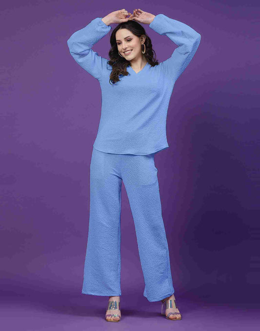 Regular price Rs. 949.00Regular priceUnit price / perRs. 0.00Sale price Rs. 949.00Blue Lycra Knitted Co-ord Set