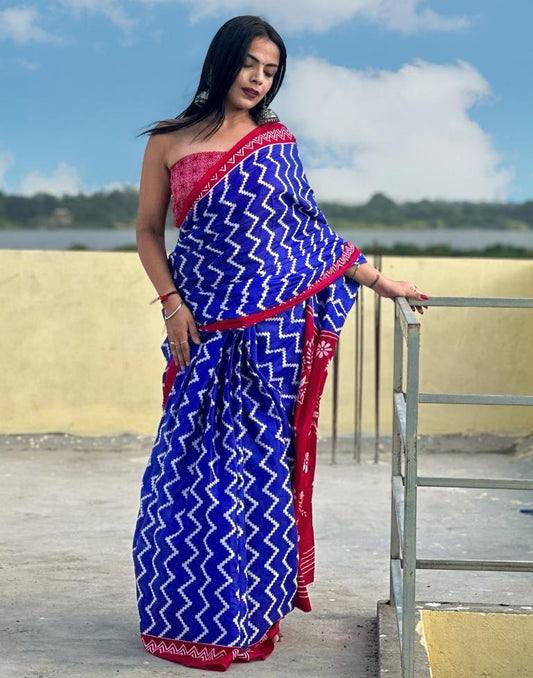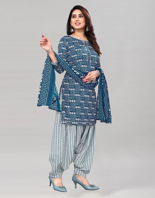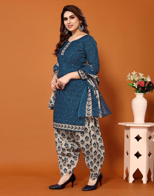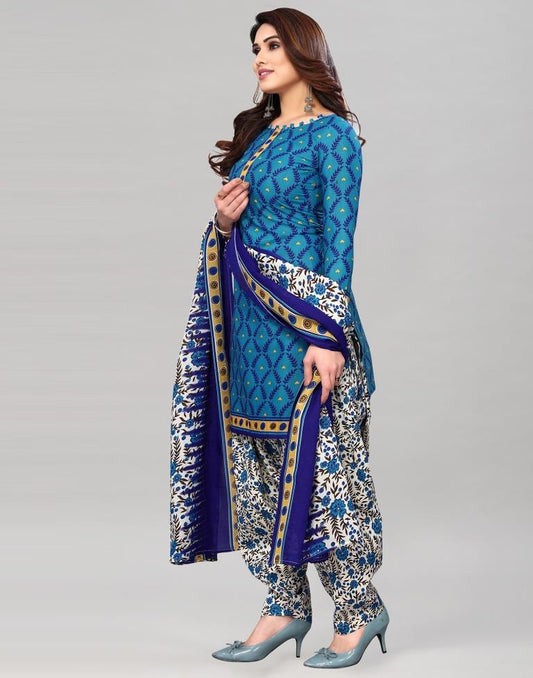 Blue Printed Cotton Unstitched Salwar Suit Material