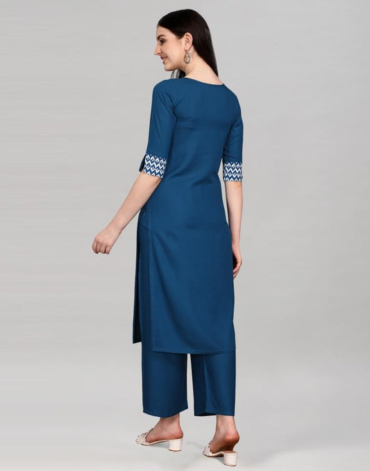 Blue Printed Kurta Palazzo Set