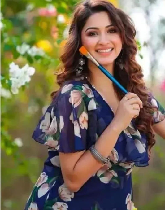 Regular price Rs. 619.00Regular priceUnit price / perRs. 0.00Sale price Rs. 619.00Blue Printed Georgette Flared Dress
