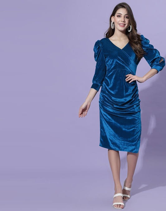 Regular price Rs. 599.00Regular priceUnit price / perRs. 0.00Sale price Rs. 599.00Blue Puff Sleeve Wrap Bodycon