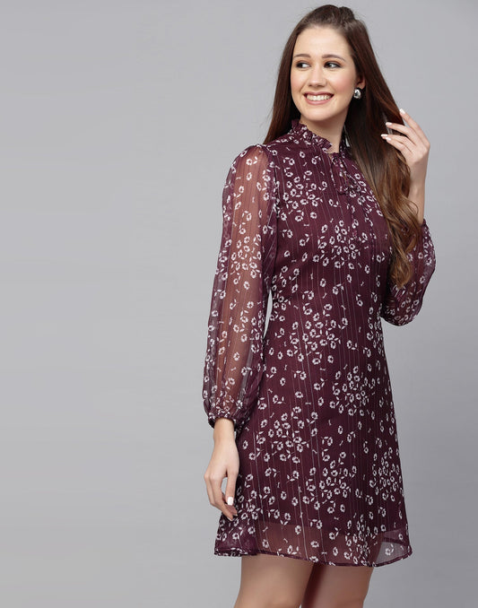 Regular price Rs. 649.00Regular priceUnit price / perRs. 0.00Sale price Rs. 649.00Wine Chiffon Fit and Flare Dress