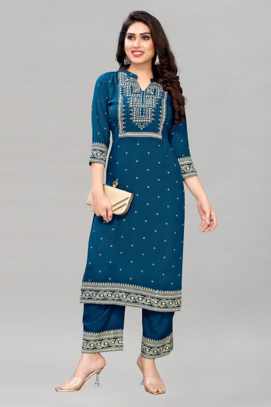 Regular price Rs. 1,029.00Regular priceUnit price / perRs. 0.00Sale price Rs. 1,029.00Teal Printed Kurta Palazzo Set