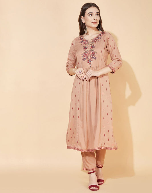 Regular price Rs. 1,049.00Regular priceUnit price / perRs. 0.00Sale price Rs. 1,049.00Beige Printed Kurti With Pant And Dupatta