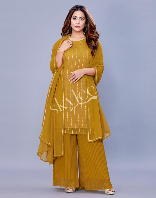 Regular price Rs. 1,299.00Regular priceUnit price / perRs. 0.00Sale price Rs. 1,299.00Mustard Kurti With Palazzo And Dupatta