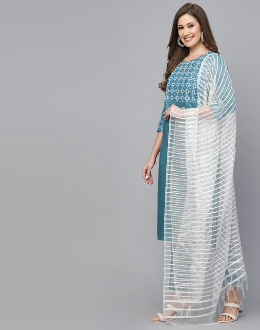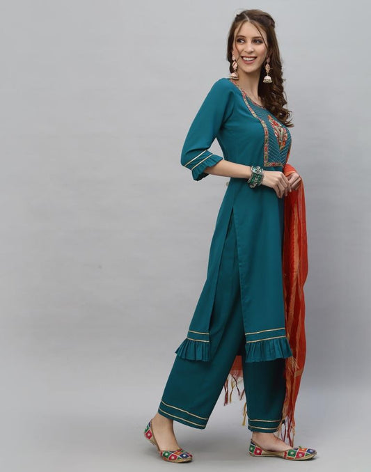 Regular price Rs. 999.00Regular priceUnit price / perRs. 0.00Sale price Rs. 999.00Teal Kurti With Pant And Dupatta