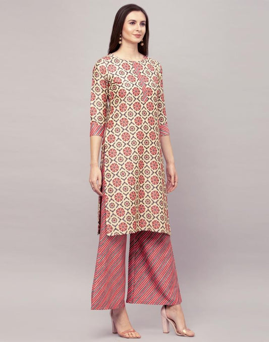 Pink Coloured Cotton Digital Printed Kurti With Palazzo