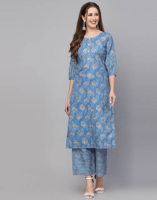 Regular price Rs. 829.00Regular priceUnit price / perRs. 0.00Sale price Rs. 829.00Blue Cotton Printed Kurta with Pant Set
