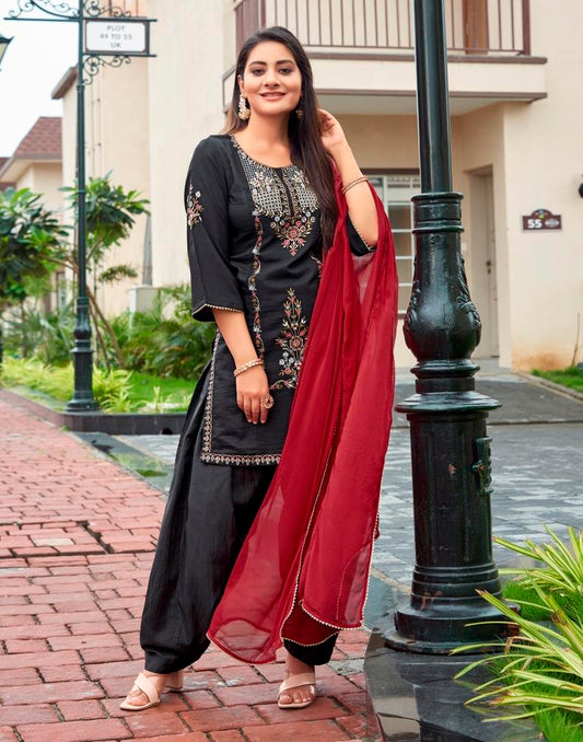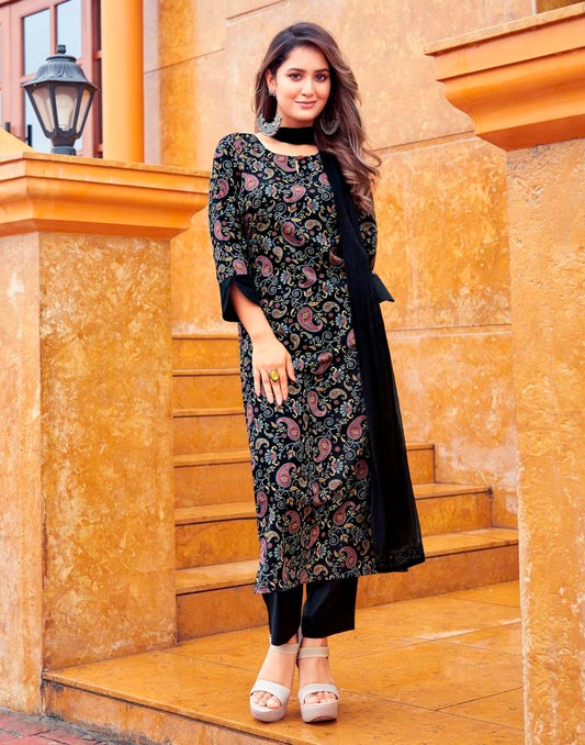 Black Embroidery Rayon Straight kurta With Pant And Dupatta