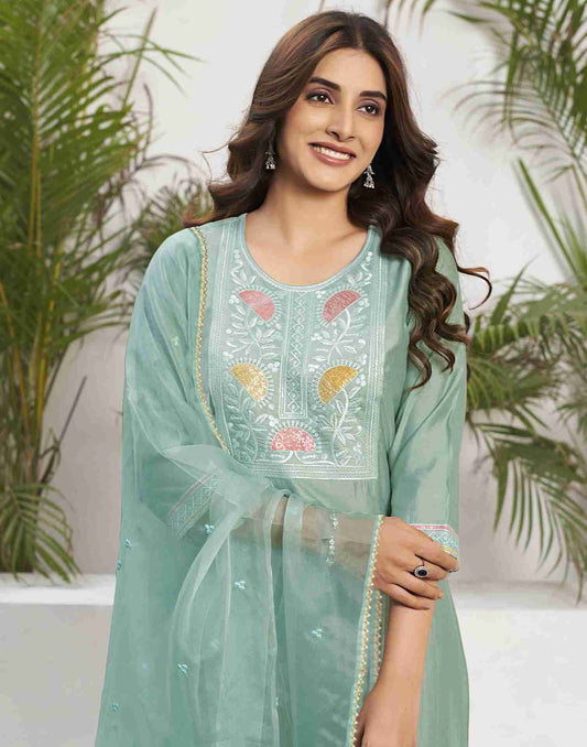 Regular price Rs. 1,279.00Regular priceUnit price / perRs. 0.00Sale price Rs. 1,279.00Light Pista Green Silk Embroidery Straight Kurta Set With Dupatta