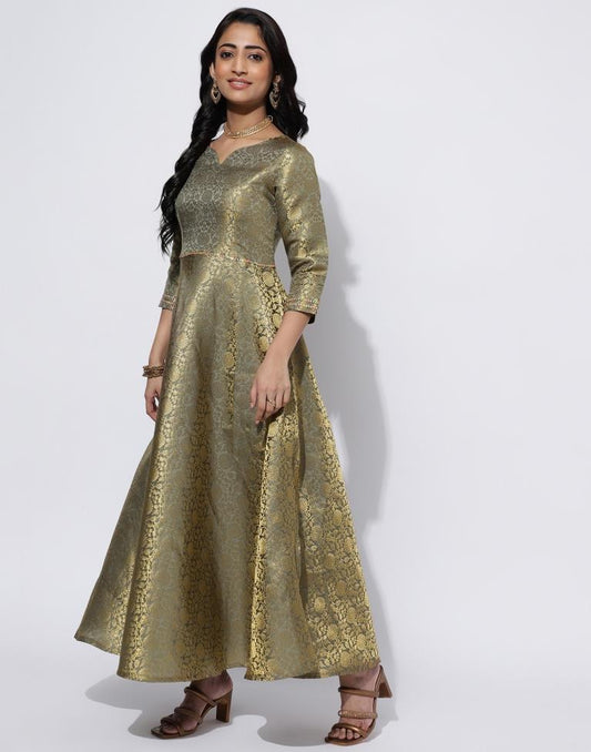 Grey Jacquard Weaving Flared Kurta With Pant And Dupatta
