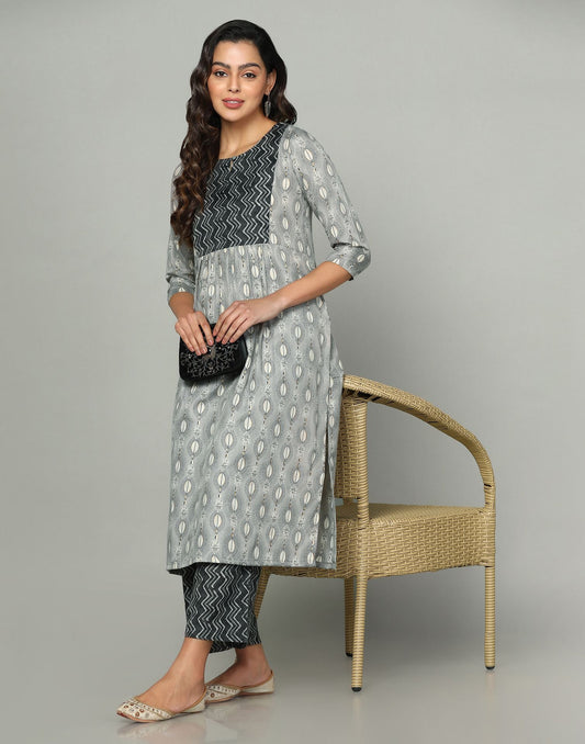 Regular price Rs. 869.00Regular priceUnit price / perRs. 0.00Sale price Rs. 869.00Grey Printed Cotton A-Line Kurta With Pant