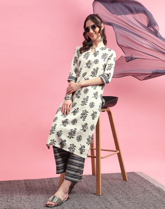 Regular price Rs. 999.00Regular priceUnit price / perRs. 0.00Sale price Rs. 999.00Off White Printed Cotton Straight Kurta With Pant And Dupatta