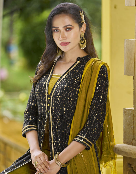 Black Printed Rayon Straight Kurta Set With Dupatta