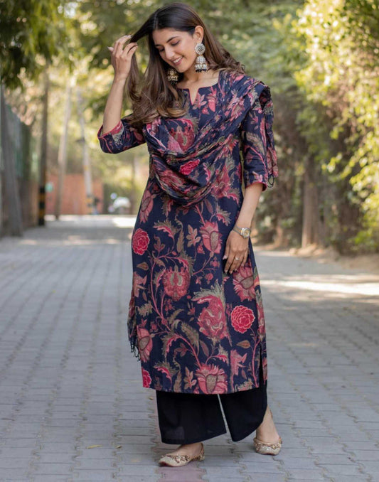 Regular price Rs. 1,069.00Regular priceUnit price / perRs. 0.00Sale price Rs. 1,069.00Kalamkari Printed Kurta With Pant And Dupatta