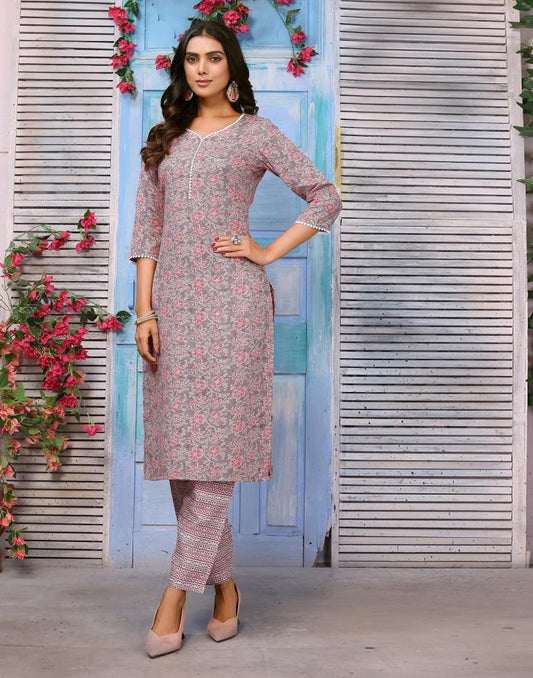 Dusty Pink Printed Cotton Straight kurta Kurta With Pant