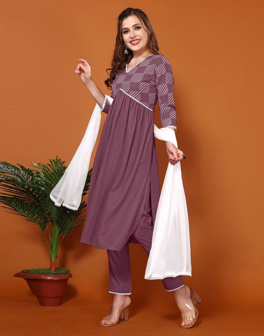 Purple Cotton Straight Kurta Set With Dupatta