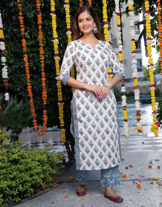 Regular price Rs. 979.00Regular priceUnit price / perRs. 0.00Sale price Rs. 979.00Blue Printed Cotton Straight Kurta Set with Dupatta