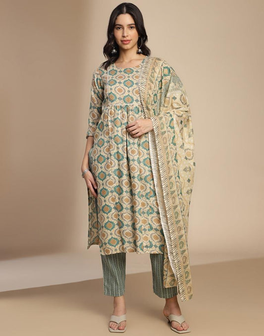 Regular price Rs. 979.00Regular priceUnit price / perRs. 0.00Sale price Rs. 979.00Green Printed Cotton Straight Kurta Set with Dupatta
