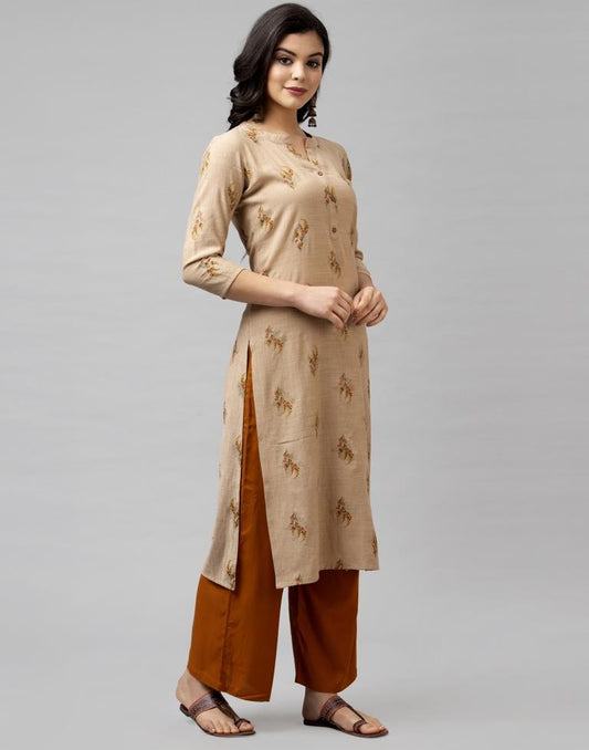 Beige Coloured Rayon Pigment Foil Printed Kurti With Palazzo