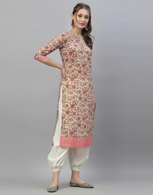 Beige And Pink Printed Kurti