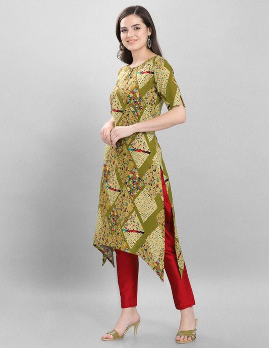 Valiant Green Coloured Foil Printed Rayon Kurti