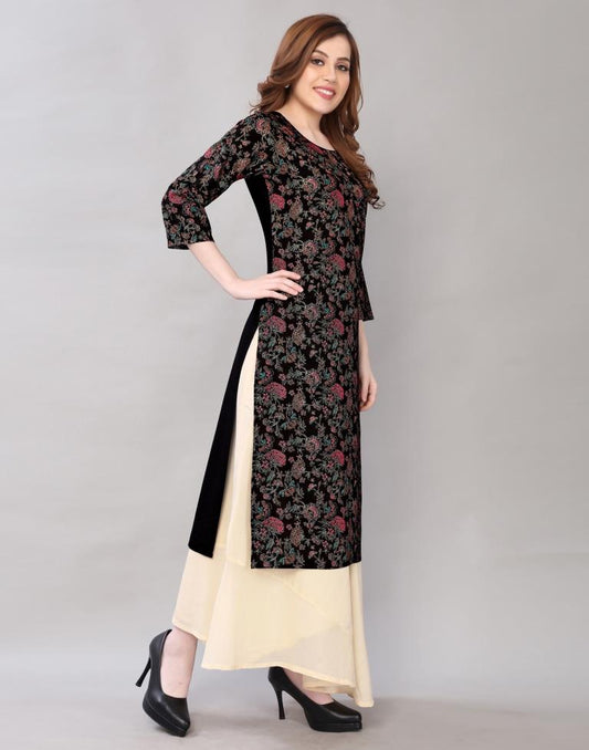 Sparkling Black Coloured Printed Rayon Kurti