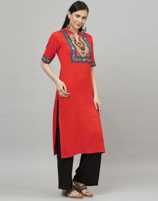 Amazing Red Coloured Digital Printed Rayon Kurti