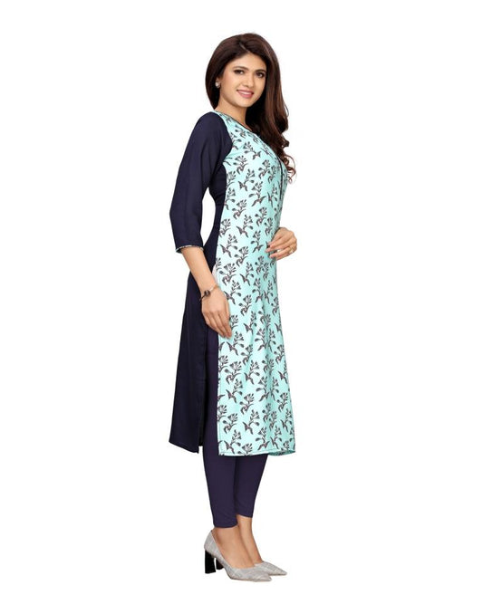 Affluent Turquoise Coloured Printed Poly Rayon Kurti