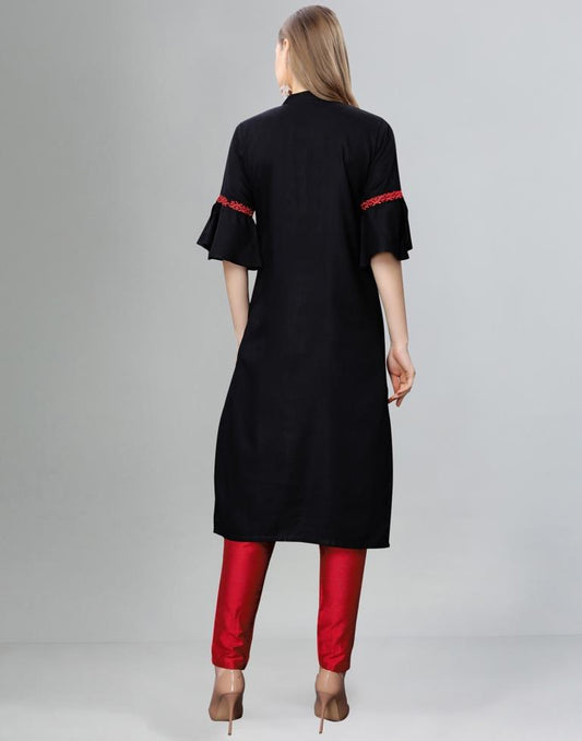 Refreshing Black Coloured Embroidered Rayon Kurti