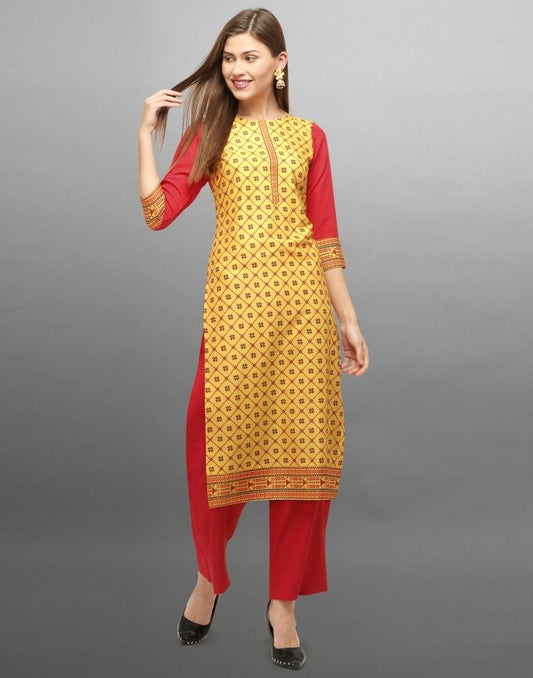 Enigmatic Yellow Coloured Printed Poly Rayon Kurti