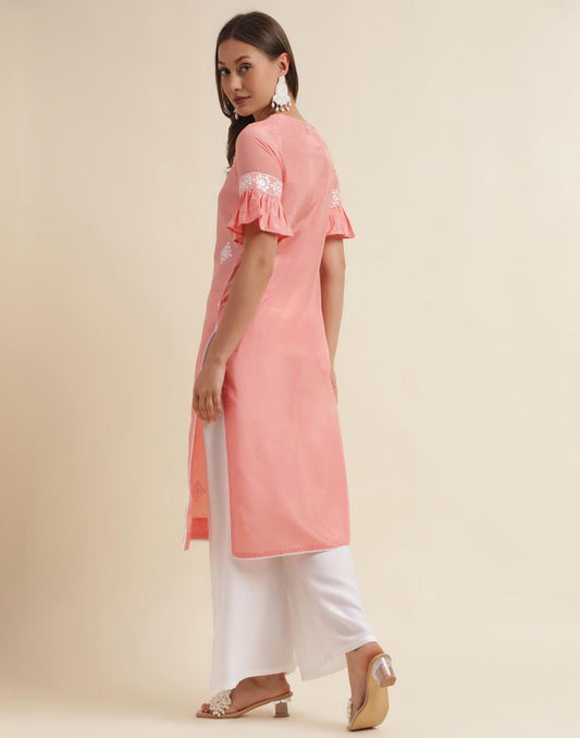 Regular price Rs. 609.00Regular priceUnit price / perRs. 0.00Sale price Rs. 609.00Pink Embroidery Chinnon Straight Kurta