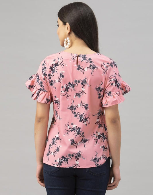 Pink Coloured Crepe Digital Printed Top