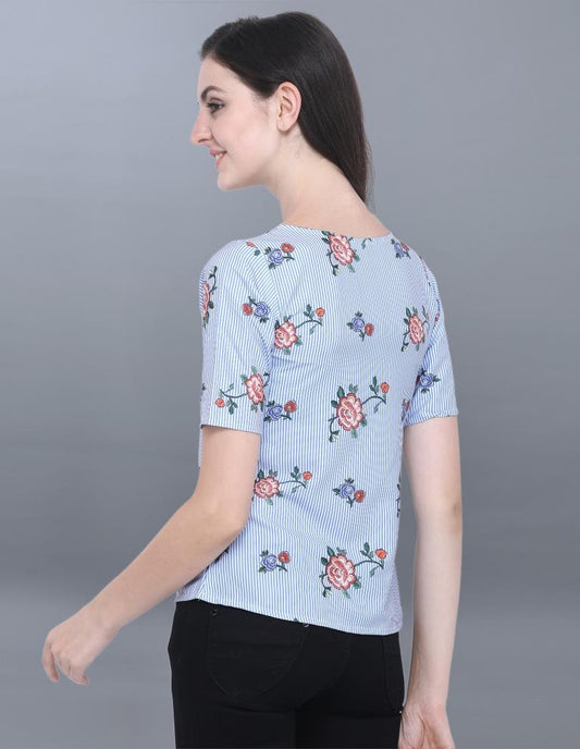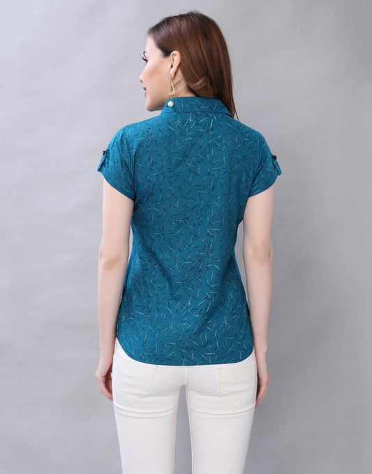 Engrossing Blue Coloured Printed Crepe Tops