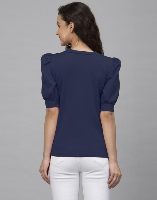 Picturesque Navy Blue Coloured Plain Crepe Tops